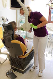 Kleine Zahn-Aufnahmen können dagegen mit modernen Röntgengeräten direkt auf dem Behandlungsstuhl im Behandlungsraum durchgeführt. So können Sie während des Röntgens unter Beachtung aller Strahlenschutzmaßnahmen bequem auf dem Behandlungsstuhl sitzen bleiben.