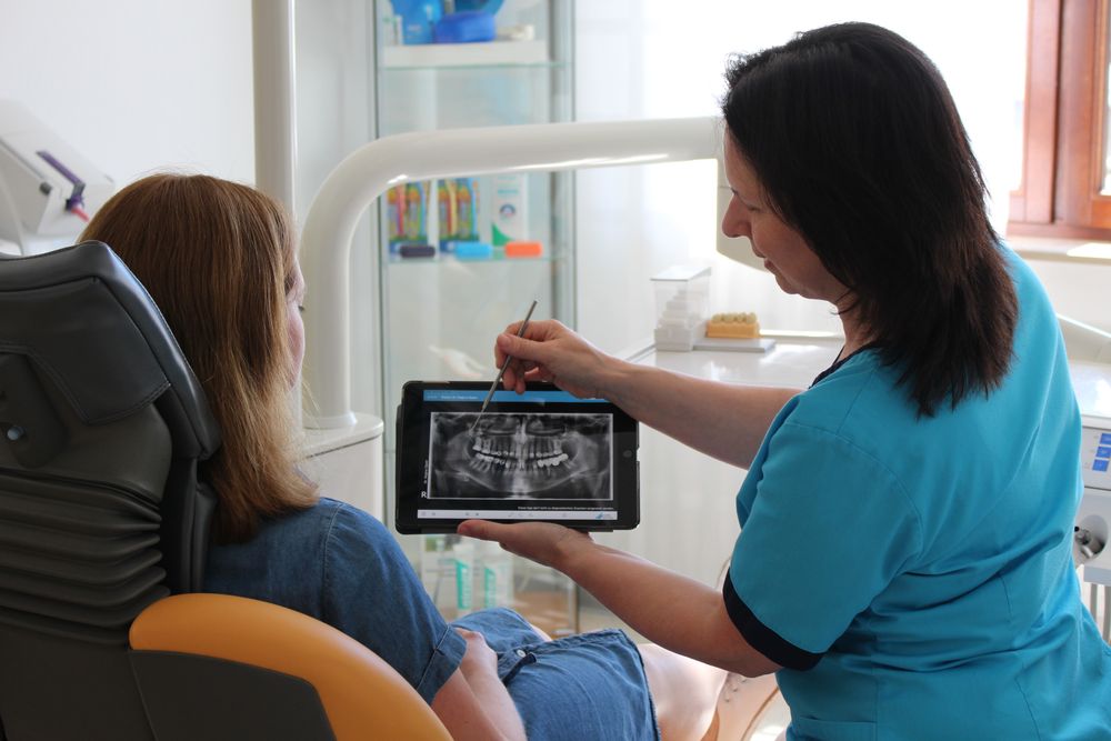 Um die Strahlenbelastung so gering wie möglich zu halten, fertigen wir digitale Röntgenaufnahmen an, die bis zu 90 Prozent weniger Strahlung als analoge Technik benötigen.